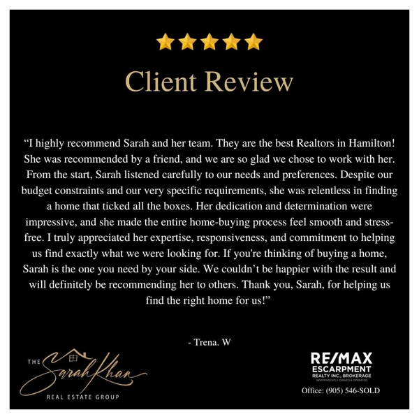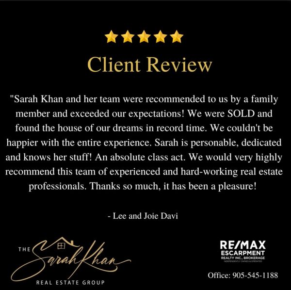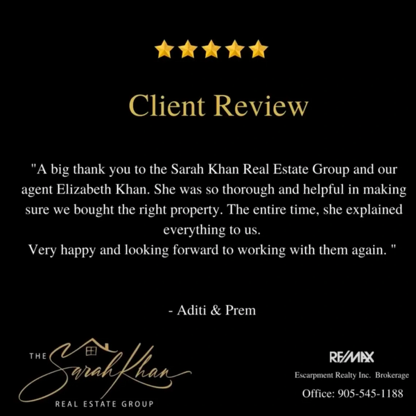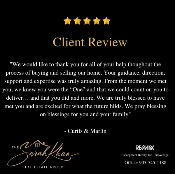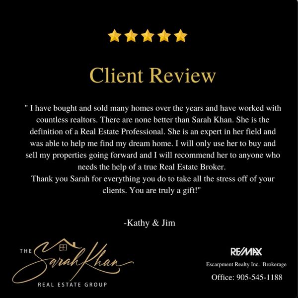 At The Sarah Khan Real Estate Group, we will continue to focus on educating our buyers and sellers and exceeding our client’s expectations of what a Real Estate professional should be.